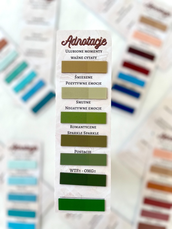 Adnotacje mo偶na uk艂ada膰 kolorystycznie wed艂ug woli!! Papierowa trwa艂a zak艂adka-adnotacje z legend膮 opisuj膮ce takie emocje jak: