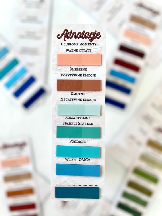 Adnotacje mo偶na uk艂ada膰 kolorystycznie wed艂ug woli!! Papierowa trwa艂a zak艂adka-adnotacje z legend膮 opisuj膮ce takie emocje jak: