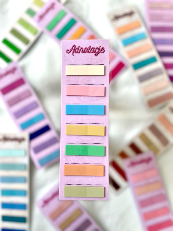 Adnotacje z personalizowan膮 legend膮 - zaznaczniki do ksi膮偶ki, personalizowana legenda. Jasny r贸偶: odcienie niebieskiego i fioletowego #AP05